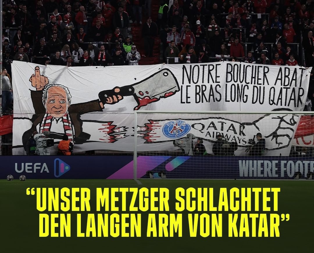 Münchner Anhänger senden vor dem Anpfiff des Champions-League-Rückspiels eine klare Botschaft in Richtung Qatar und Gegner Paris Saint-Germain. Damit nehmen sie Bezug auf jüngste Aussagen von Uli Hoeneß.
