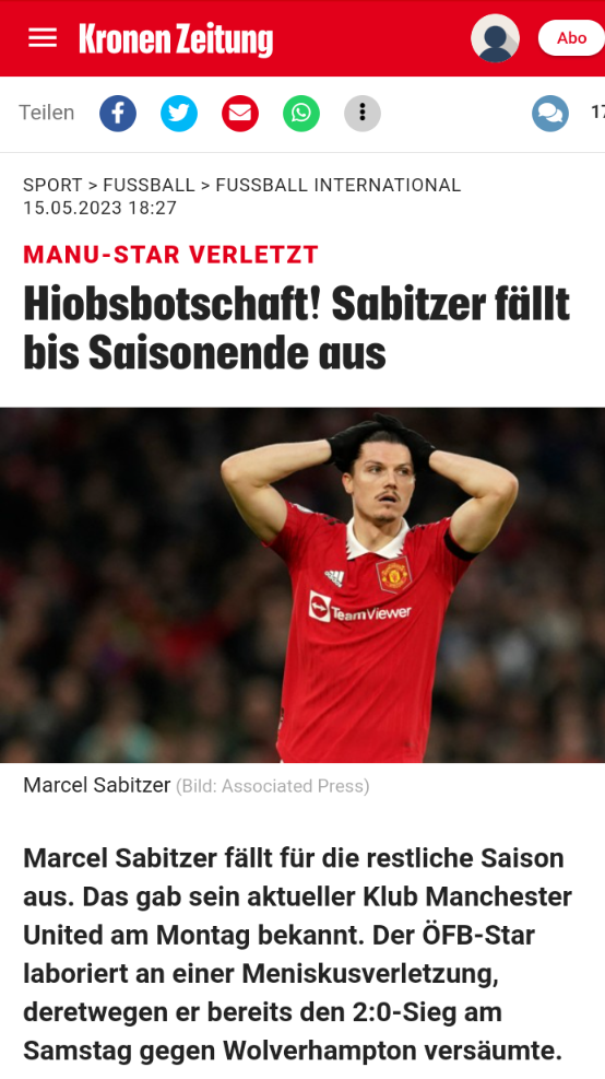 Komischer Artikel in der Krone. Wer der verletzte "MANU-STAR" ist, schreiben sie nicht.