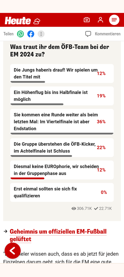 101% der Befragten trauen dem österreichischen Team alles mögliche, vom Vorrundenaus bis zum EM-Titel zu.