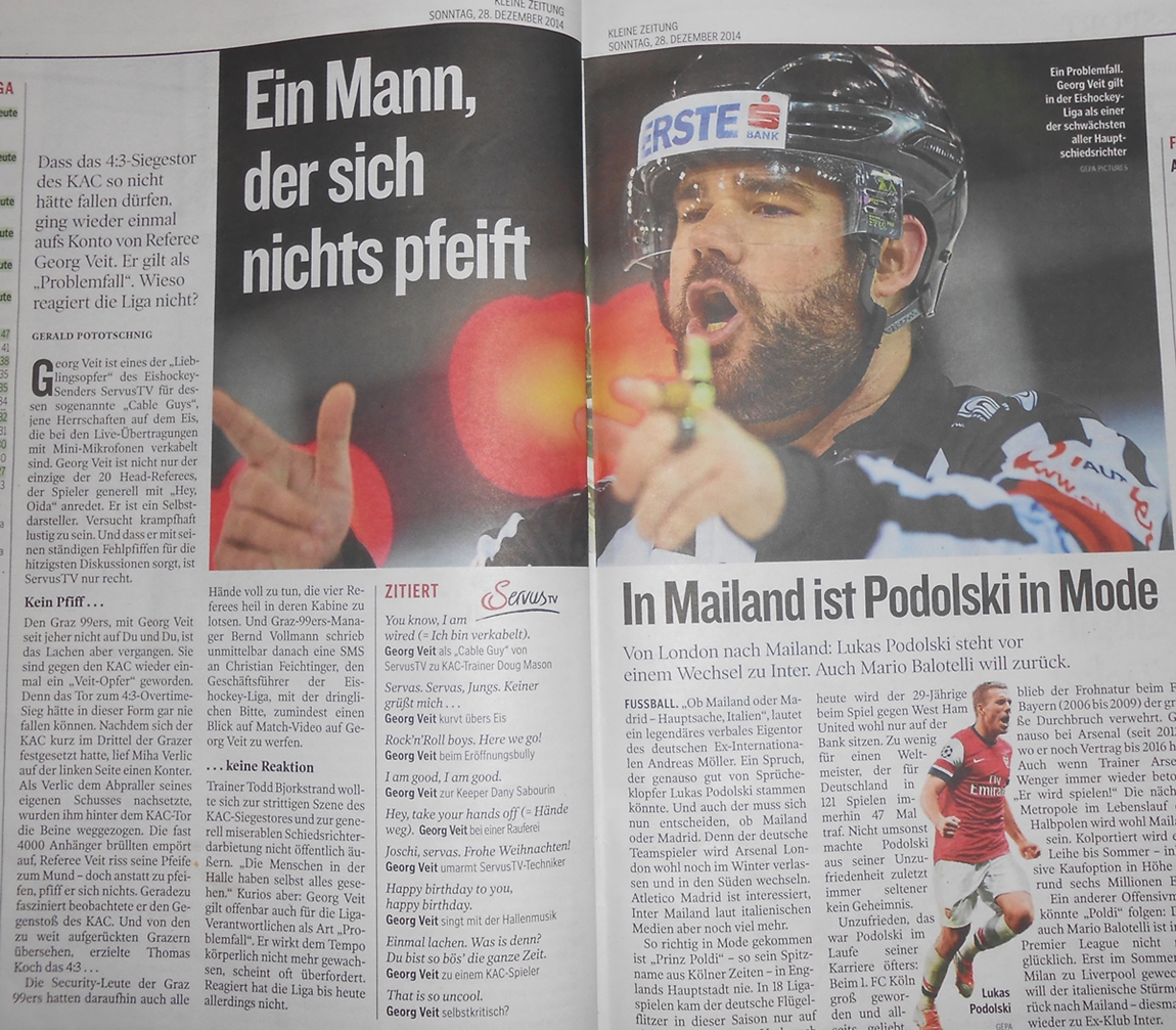 Abgesehen davon kennen wir alle die schwachen Schiris in unserer Liga, da erübrigt sich sowieso jeder Kommentar. Das Problem ist seit Jahren bekannt, da verstehe ich aber auch nicht wieso man schon so lange zusieht und untätig bleibt. Für micht ist es jedenfalls klar, dass man einen Seitz nichteinmal kostenlos bei uns braucht. Er hat bislang keinen positiven Fortschritt bewirkt und auch keine Richtung oder Plan vorgegeben. Dass wenigstens mal einer den Mut aufbringt einen solchen Artikel zu verfassen (selbst wenn es nur der Pototschnig ist) halte ich in Anbetracht der Umstände auf jedenfall für gerechtfertigt. Die Meinungen von anderen, man solle die Entscheidungen halt mal so hinnehmen und ein Foul ists erst wenn der Schiri es gibt, teile ich bei der immer größer werdenden Anzahl an Fehlentscheidung nicht mehr. Da kann mich jetzt jeder der Vereinsbrille bezichtigen, aber wenn 2 Spiele hintereinander verloren gehen, weil den entscheidenden Treffern (und auch dem 1:2 von Villach gegen Graz) ganz klare Fouls vorausgegangen sind, obwohl 3 Schiris unmittelbar daneben stehen, ist einfach nicht mehr mit so einem billigen Sätzchen (Ausrede?) getan. Dass die Spiele aufgrund des Spielverlaufs verdient verloren gingen muss auf jedenfall getrennt beurteilt werden. Vernebelte Chancen, fatale Schnitzer in der Abwehr usw. können sich mit Glück und Pech untermauern lassen. Schiedsrichterentscheidungen, also Aktionen die nicht im Machtbereich der Mannschaft liegen, können das aber niemals sein. Da kann es nicht sein, dass man sich hier auf Zufall und Glück eines Halbprofis stützt und das auch noch in irgendeiner weise blöd rechtfertigt. Wie gesagt, früher war ich auch dieser Meinung dass Schiris einen harten Job haben und doch frei von Kritik bleiben sollten, aber nicht wenn es solche Züge annimmt wie die letzten Jahre in unserer Liga. Und als Paradebeispiel ist mir hier noch immer die Partie Graz vs. Zagreb im Auge. Seit diesem Spiel ist es nicht mehr mit solchen Sätzchen getan. Und es ist ja bei Gott nicht nur in Graz so, es nimmt ligaweit eine ungeheuerliche Quote an Fehlentscheidungen an.