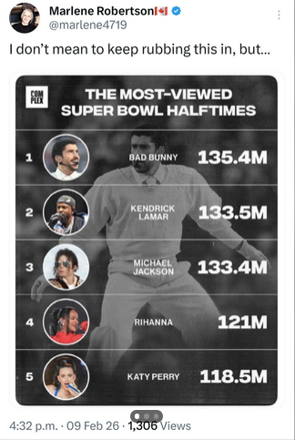 wennst im radio was zum superbowl hörst, dann auch eher zur ht show als zum spiel selbst, das ist traurig. (oder vonn und olympia).