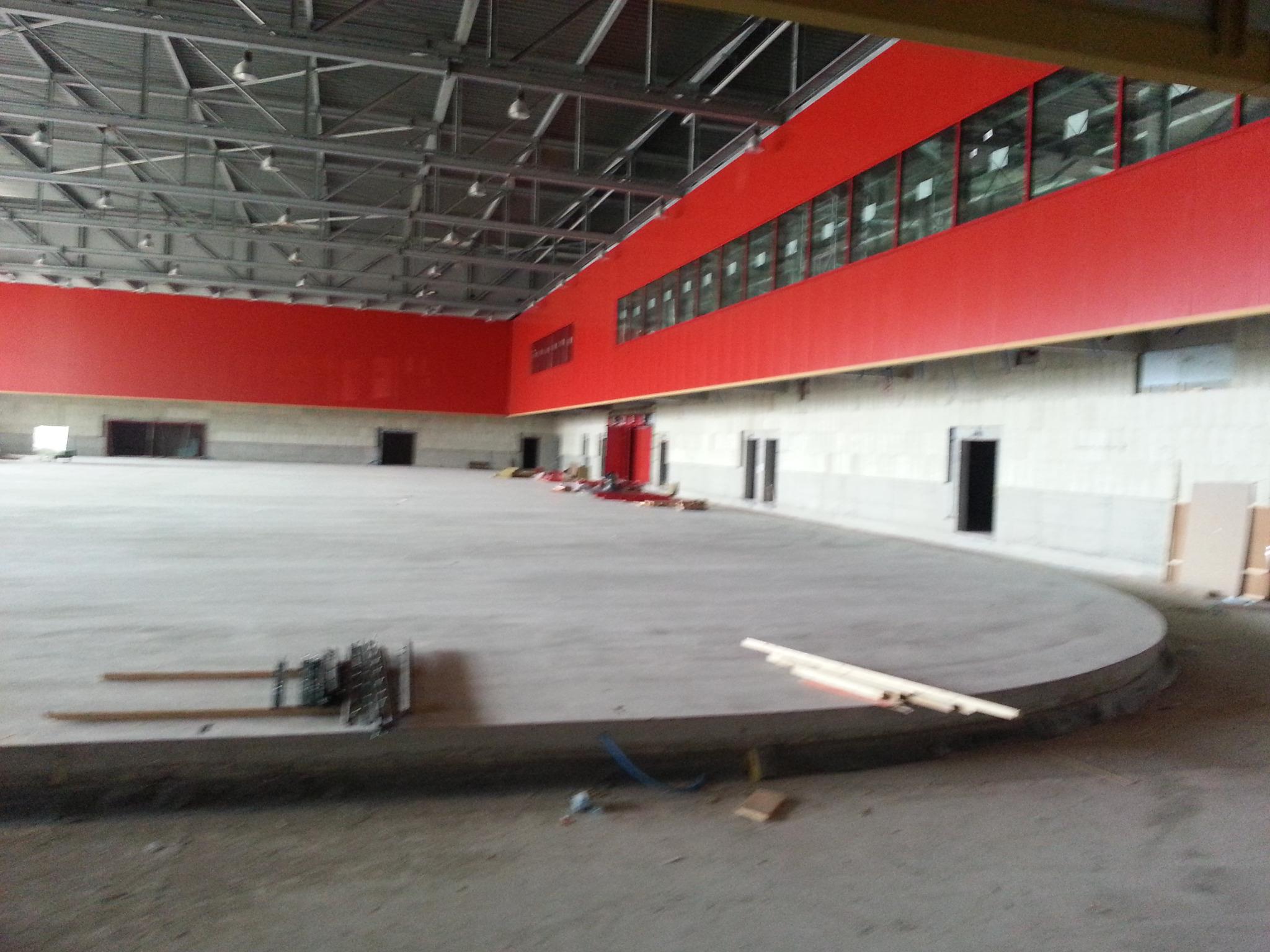 Das Eisstadion ist im Moment voll mit Gerüsten. Statt Eis gibt es derzeit nur Beton weit und breit. Als Besonderheit hat das Eisstadion keine Ecken, wie die Verantwortlichen sagen. Homologiert wurde es für 7000 Plätze, am Ende dürften es wohl 6500 geben.