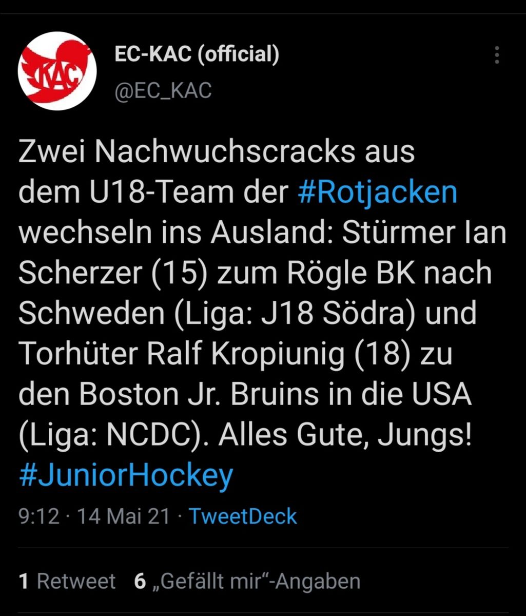 Spannende Sache auf jeden Fall; bin gespannt, ob er es dann auch in die USHL schafft sofern er den Wechsel wagt.