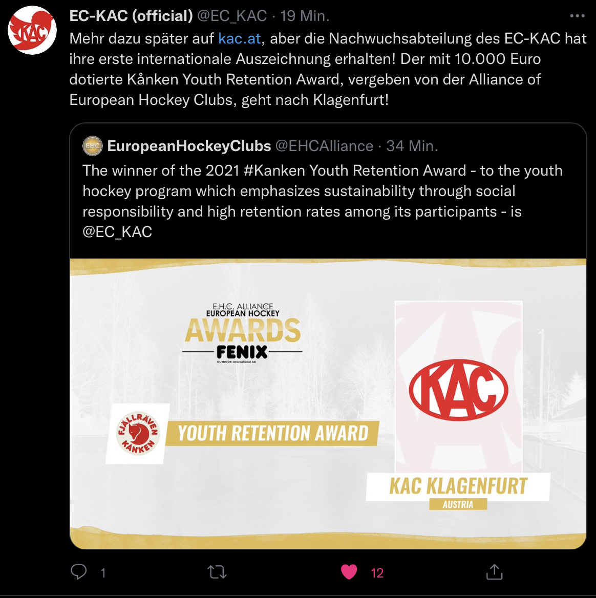 KAC gewinnt den mit 10.000,-- € dotierten Kånken Youth Retention Award !!!