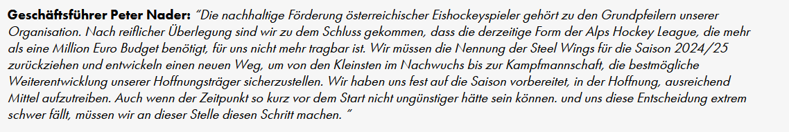 Mich wundert's ehrlich gesagt schon etwas, dass eine Kooperation mit einem gestandenen Alps-Verein (wie es etwa Villach oder die Caps praktizieren) scheinbar so gar kein Thema ist. Mit den restlichen Spielern könnte man ja trotzdem eine ganz normale U20 spielen.