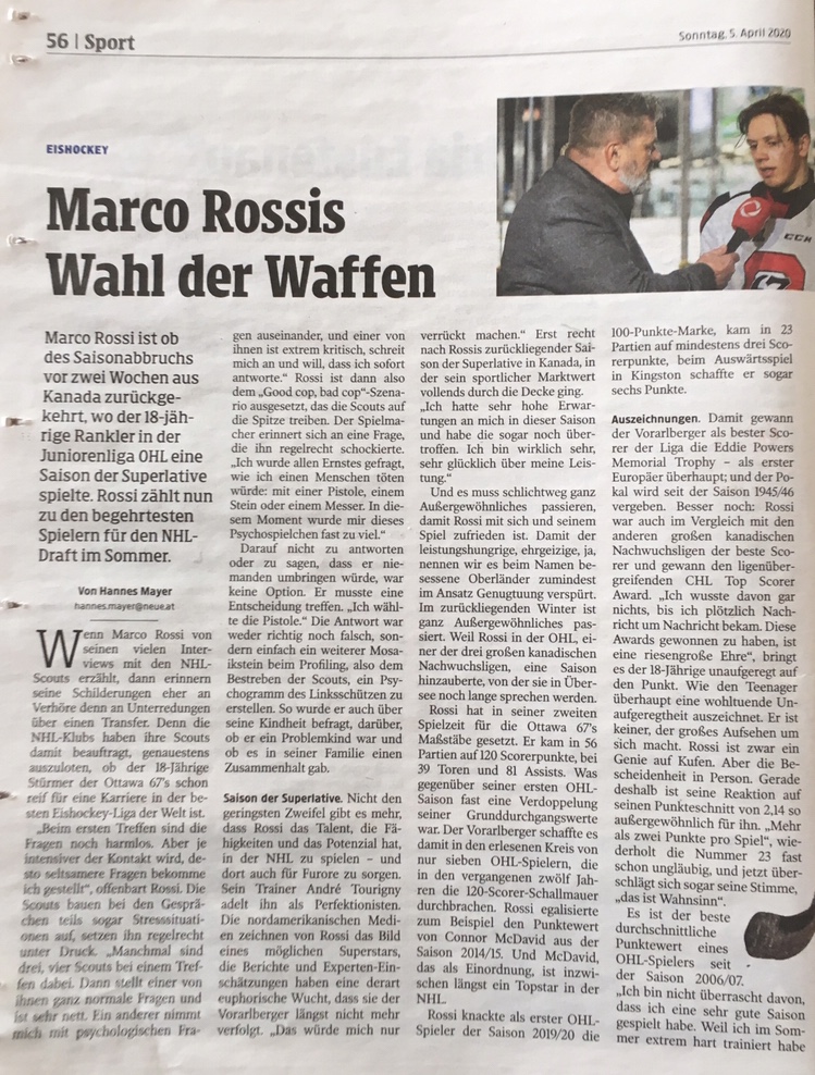 Heute ist ein sehr langer Artikel in der Neue über Marco Rossi erschienen.