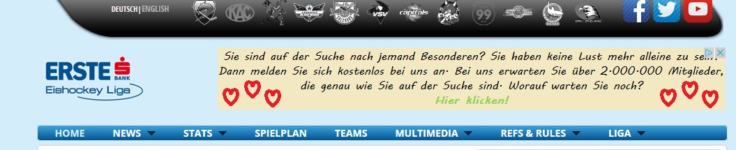 Da schau an, der Webdesigner der verbotenen Seite ist also zur offiziellen der EBEL gewechselt. Also rein optisch schon die Seite für mich wirklich furchtbar aus, wie eine Homepage aus dem Jahre 2000. Inhaltlich kann ich noch nichts dazu sagen.