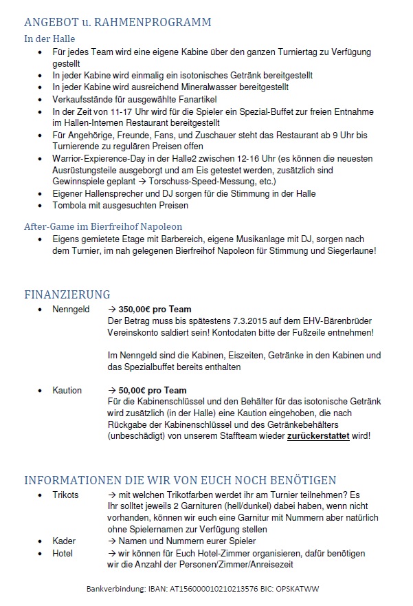 Am Samstag den 25.April 2015, organisiert der EHV-Bärenbrüder den 1. Bärencup in der Albert Schulz Halle!