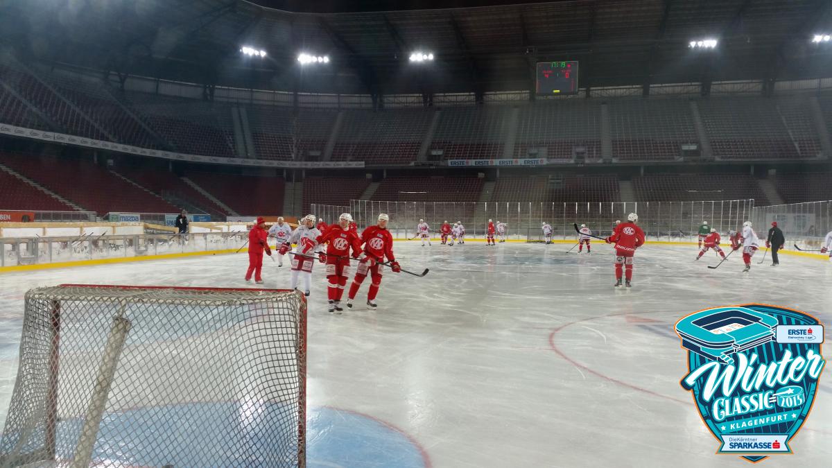 Zwecks "Familientraining": Hätte der KAC gewonnen, wäre das jetzt kein Problem.