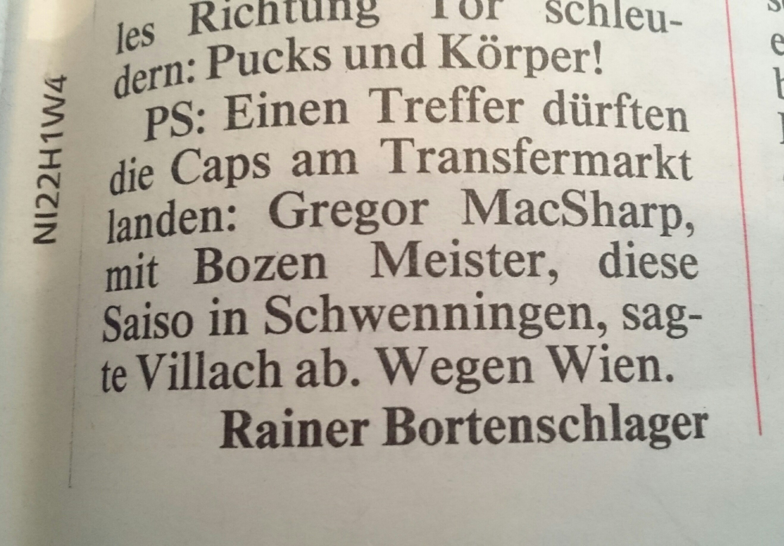 "Der KAC will nach dem 2:5 in Salzburg heute ebenfalls ausgleichen. Und die Klagenfurter dementieren, dass Stürmer Oliver Setzinger bereits verlängert hat. Dieser will nämlich auch mit den Capitals verhandeln."