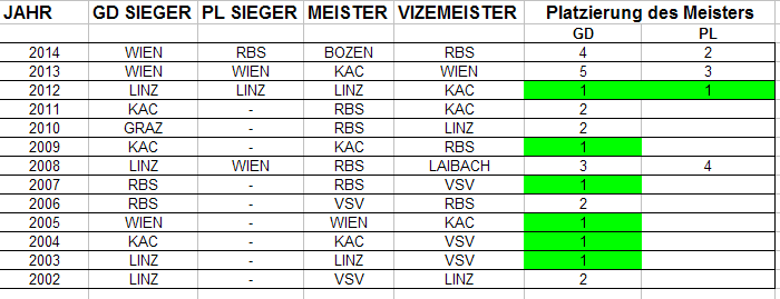 Für mich die Halbinalgegner vom erwarteten Meister 2015 Red Bull und dessen Finalgegner Linz die letzten offenen Entscheidungen in der EBEL 2014/15.