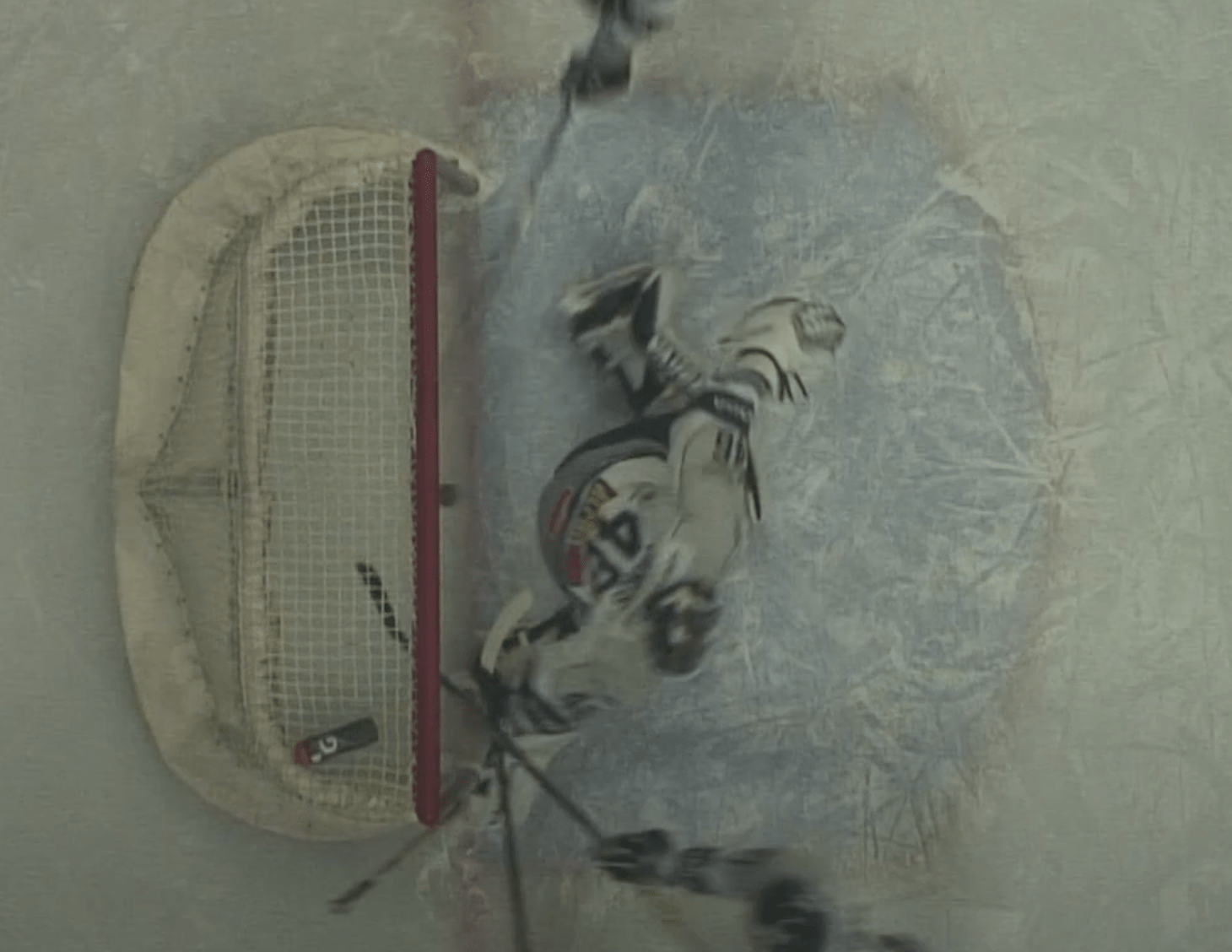 Wieso findest, dass der Kamerawinkel skandalös ist? Ich bin der Meinung, dass es fast der bestmögliche Winkel ist, den du für ein Videostudium verwenden kannst. Die Distanz zwischen Torlatte und Linie ist recht klein, was bedeutet, dass die Kamera fast genau darüber ist und der Winkel recht klein ist, trotzdem ist sie noch groß genug, dass du bereits einen ganzen Puck erkennen kannst. Skandalös ist der Winkel mMn, wenn die Distanz von Torlatte zu Linie am Bild groß ist, weil das bedeutet, dass die Kamera weiter weg vom Zenit platziert ist und damit hat man natürlich auch eine größere Verzerrung.