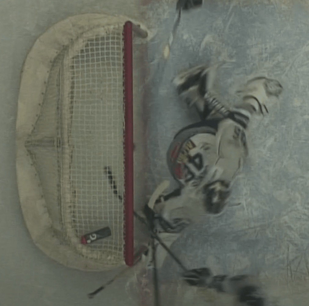 Wieso findest, dass der Kamerawinkel skandalös ist? Ich bin der Meinung, dass es fast der bestmögliche Winkel ist, den du für ein Videostudium verwenden kannst. Die Distanz zwischen Torlatte und Linie ist recht klein, was bedeutet, dass die Kamera fast genau darüber ist und der Winkel recht klein ist, trotzdem ist sie noch groß genug, dass du bereits einen ganzen Puck erkennen kannst. Skandalös ist der Winkel mMn, wenn die Distanz von Torlatte zu Linie am Bild groß ist, weil das bedeutet, dass die Kamera weiter weg vom Zenit platziert ist und damit hat man natürlich auch eine größere Verzerrung.