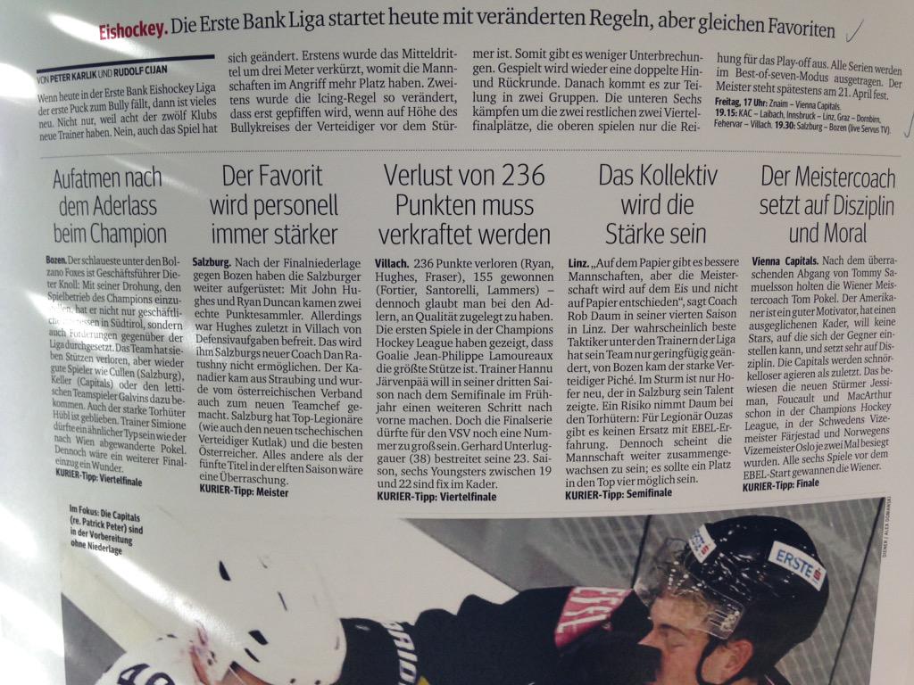 Also der Peter Karlik vom Kurier hat es verdient, hier erwähnt zu werden, hat er doch das Finale vorausgesehn (mit falschem Meister aller Logik nach, aber das ist jetzt egal)