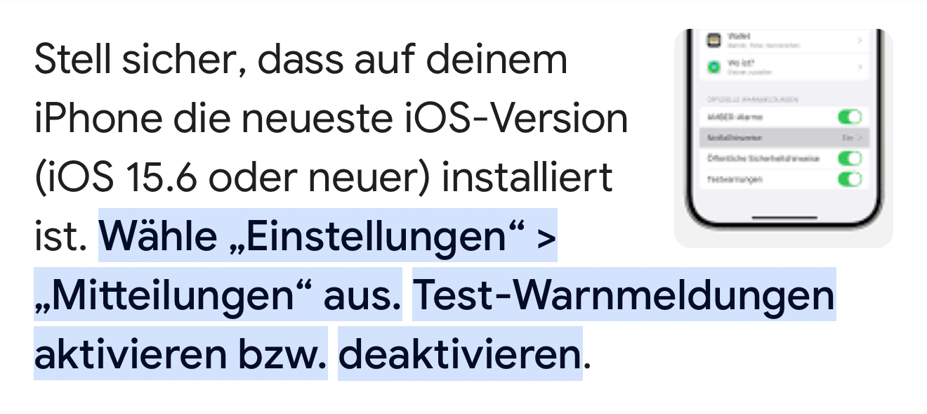 Zudem wird der AT Alert getestet. Vielleicht haben den einige von euch schon mitbekommen. AT Alert warnt vor Gefahren oder sollte auch bei vermissten Personen informieren.