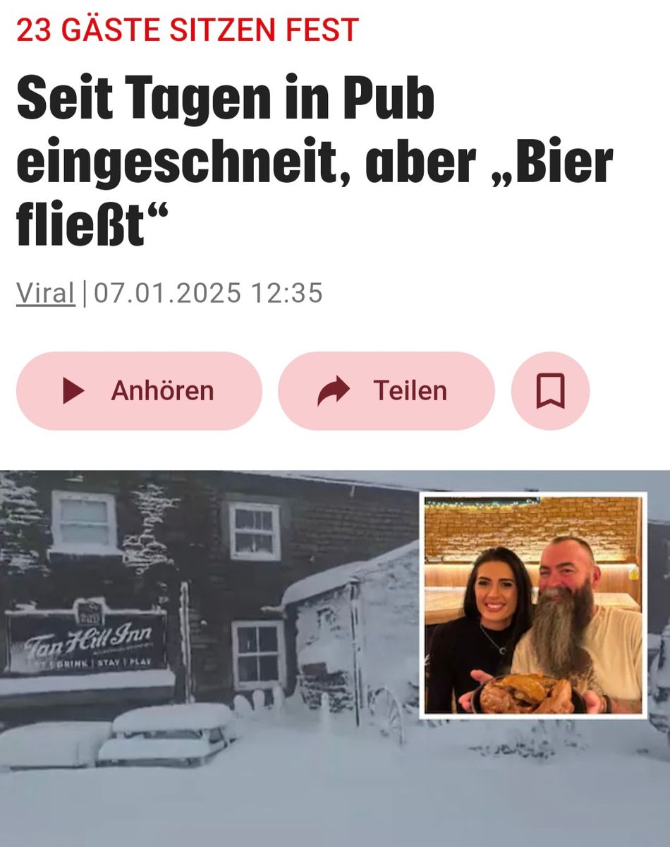 Seit Tagen in Pub eingeschneit, aber „Bier fließt“