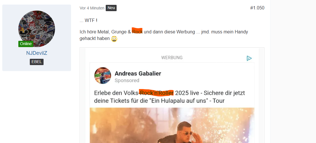 Ich höre Metal, Grunge & Rock und dann diese Werbung ... jmd. muss mein Handy gehackt haben =O