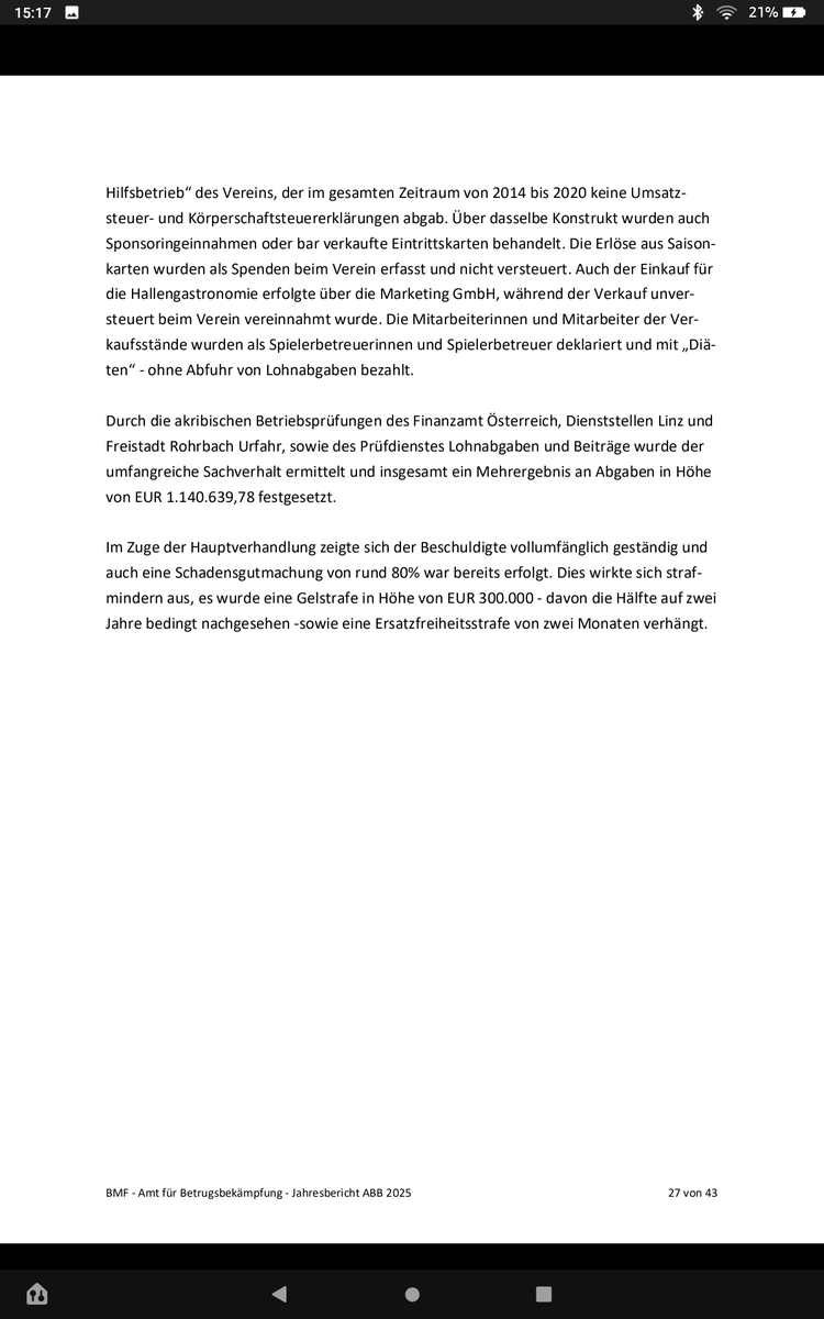 Wer bisher die 80 % der hinterzogenen Abgaben (1.140.639,78 Euro "Mehrergebnis" aus Sicht der Prüfer) = 912.511,20 Euro plus Säumniszuschläge etc und Zinsen gezahlt hat, verrät das ABB nicht. Wohl die Black Wings.