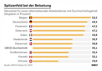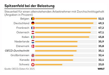 Ganz einfach, meistens hört man wenn man weniger Steuern fordert, nur USA. Als gäbs keine anderen Länder wo man weniger Steuern zahlt. Kanada? Schweiz?