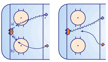 Diese Variante stellt vor allem unerfahrene Verteidiger bzw eisläuferisch schwächere Verteidiger vor Probleme