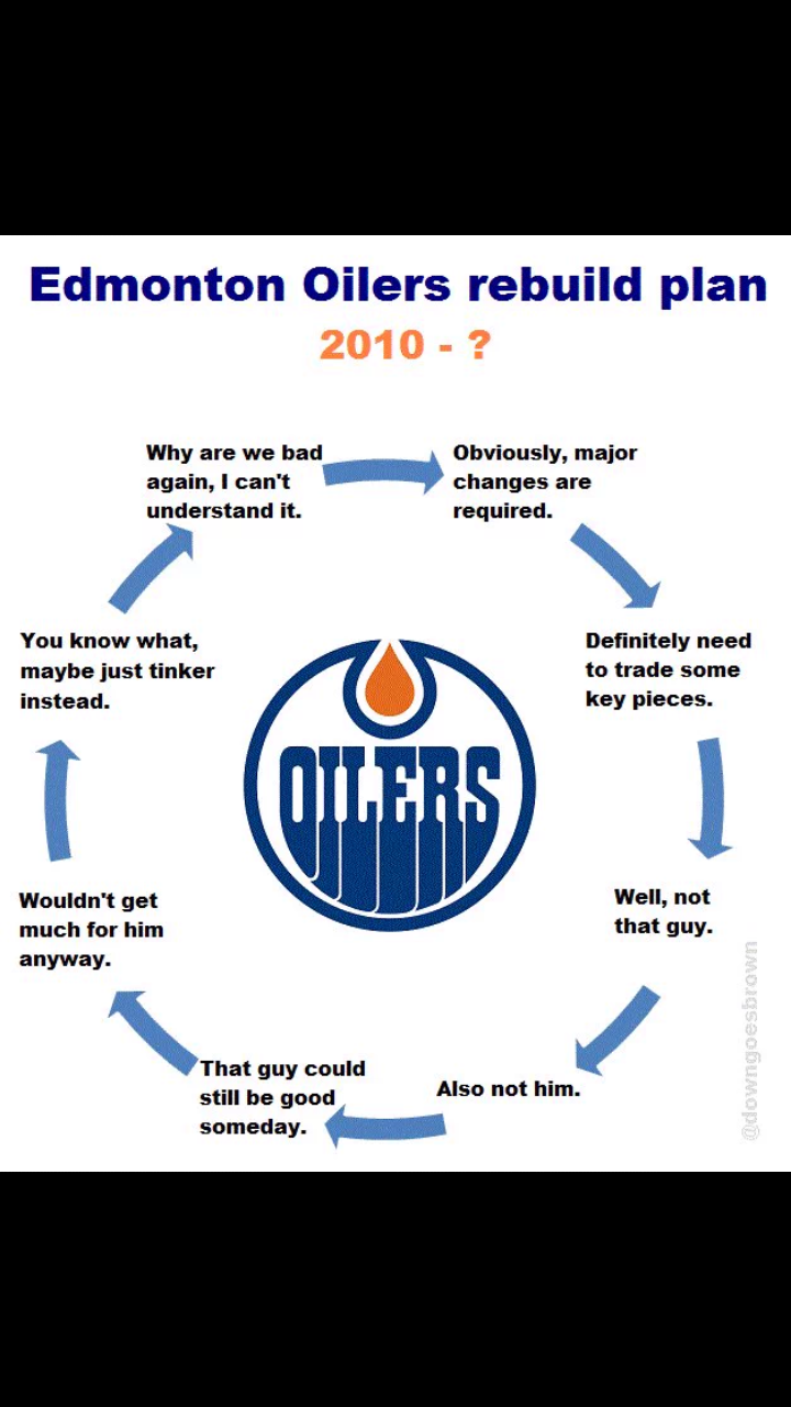 Voriges Jahr hab ich große Hoffnungen auf Viktor Fasth gehabt, dass sich das ewige Goalie-Problem mal vertschüssen wird - war wohl nix. Nächstes Jahr, nächster Schwede, Anders Nilsson hat für ein Jahr unterschrieben. Wenn er so spielt wie bei der WM 2014, wäre es schön, aber bislang scheint ihm die europäische Eisfläche mehr zu liegen. Und mit Scrivens und Talbot stehen ja noch zwei weitere Back-Ups als Nr1 vor ihm und zur Wahl. Kann ja nicht sein, dass ein Team mit der großen Goalietradition Fuhr, Moog, Ranford und Joseph (und mit Abstrichen dann noch Salo und Roloson) keinen g'scheiten Trade in der Hinsicht mehr an Land ziehen kann.