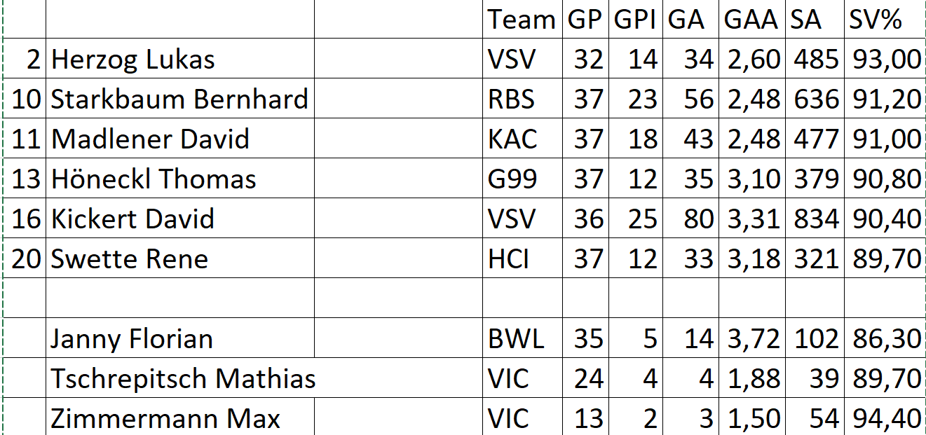 Das ist die vollständige Liste, Keeper mit wenig Spielzeit werden in der EBEL-Statistik nicht angeführt.