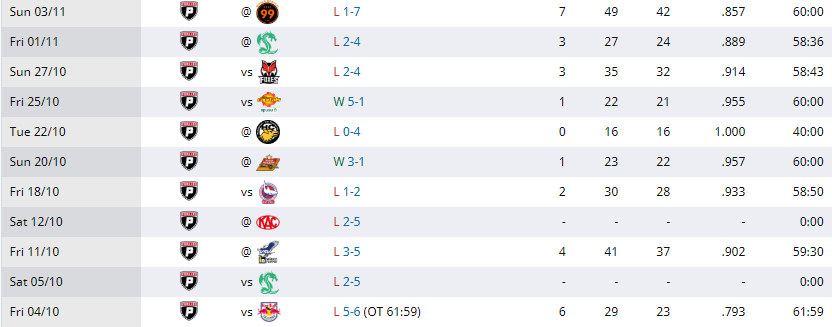 Irgendwann sollte man sich schon die Frage stellen, ob man seine Karriere, wenn überhaupt, in der ALPs fortsetzen sollte. Und der Verein sollte sich Gedanken machen, einen soliden Backup Goalie zu holen, den man auch ohne Bauchweh einsetzen kann.