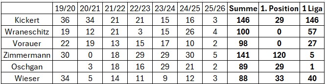 Hab mir einmal aus Interesse die Anzahl der Spiele der wichtigsten österreichischen Goalies angeschaut. Find ich interessant. Die Interpretation bleibt jedem selbst überlassen. Seit Jahren hat keiner außer einem eine 1. Position. Das ist unser Dilemma.