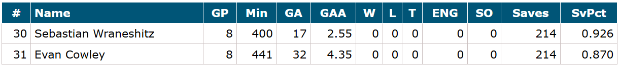 Man beachte, dass der winning record des Teams 3:11 ist. Trotzdem hat er vernünftige zahlen. Gaetan allerdings mit wirklich richtig guten Werten, muss er zwar auch mal auf Dauer bringen, aber Konkurrenz belebt ja das Geschäft ;)
