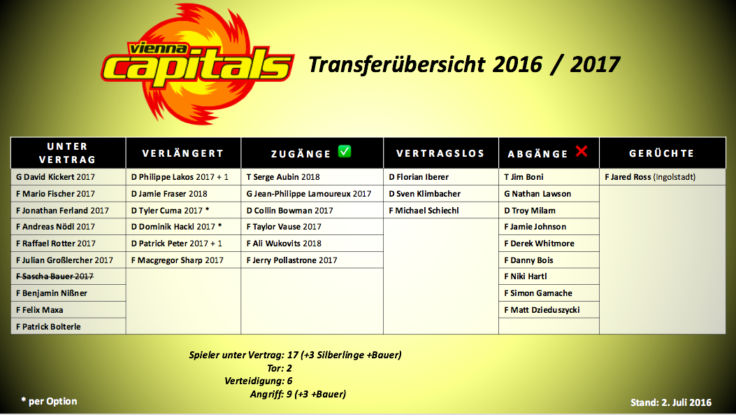 Brucker wurde öfters genannt, dazu einige DEL Legios, die Aubin offensichtlich gerne hätte, deren Preis aber offenbar nicht ganz EBEL/Caps-kompartibel sind.