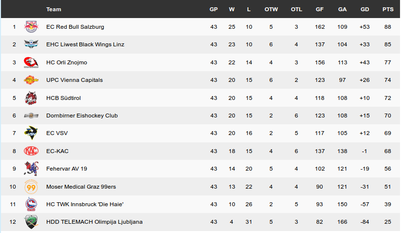 gratuliere an die klagenfurter, verdienter sieg. wie immer zum rechten zeit in top form, vermutlich auch im playoff so dass man sich in der kommenden offseason wieder alles schön reden kann.