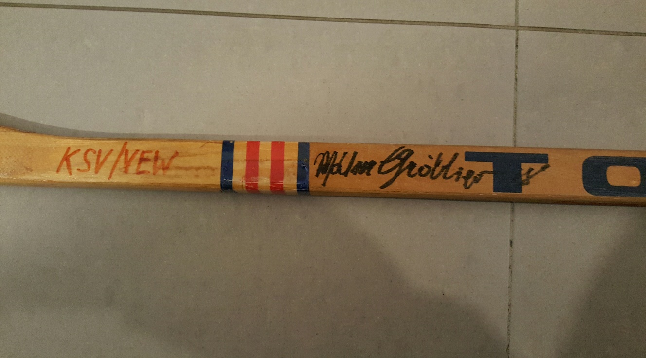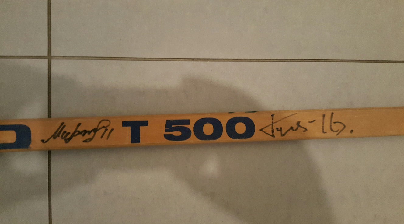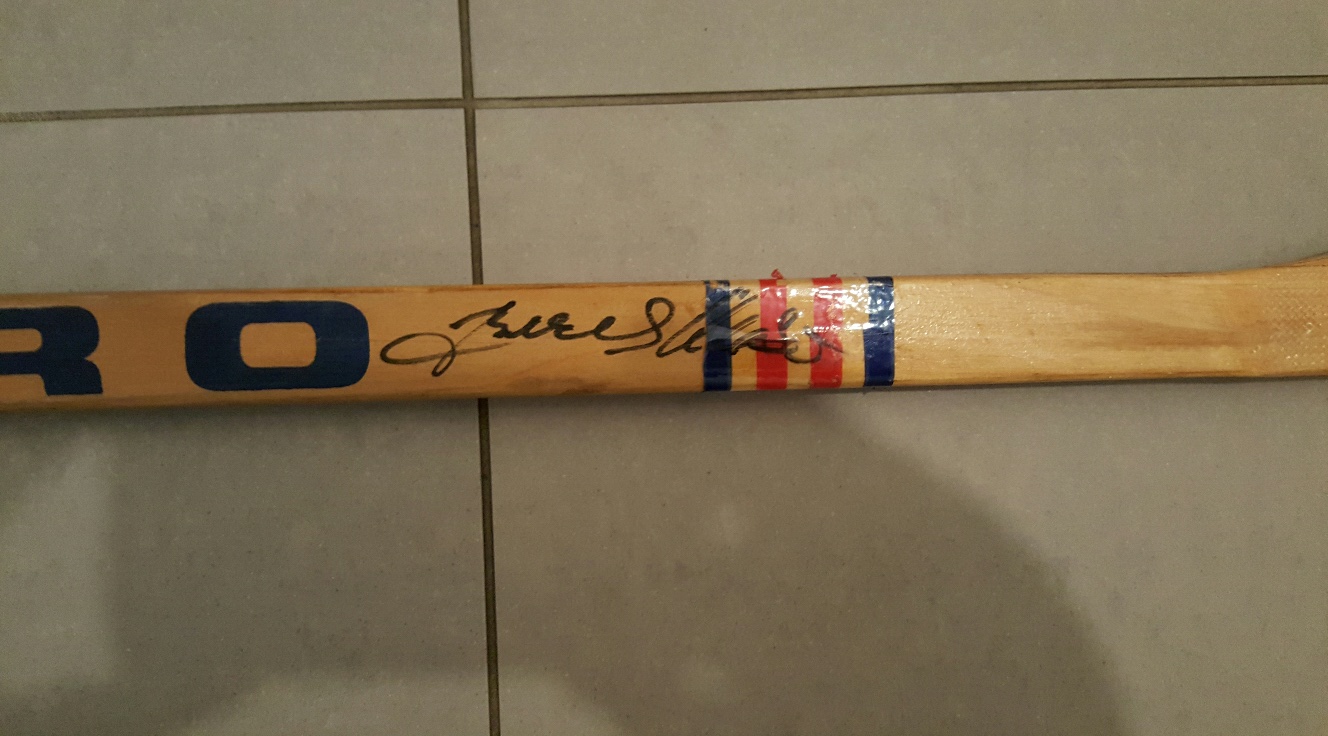 "Dieser mittlerweile bald 40 Jahre alte Schläger von Robert Pratter, aus der Saison 1978/1979, hat es auf Grund der für mich falschen Biegung unbeschadet überstanden!"