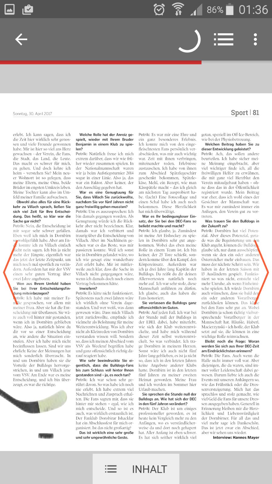Petrik wurde in der heutigen Neue zwei Seiten lang interviewt. Unterstreicht einmal mehr was für ein toller Kapitän er war.