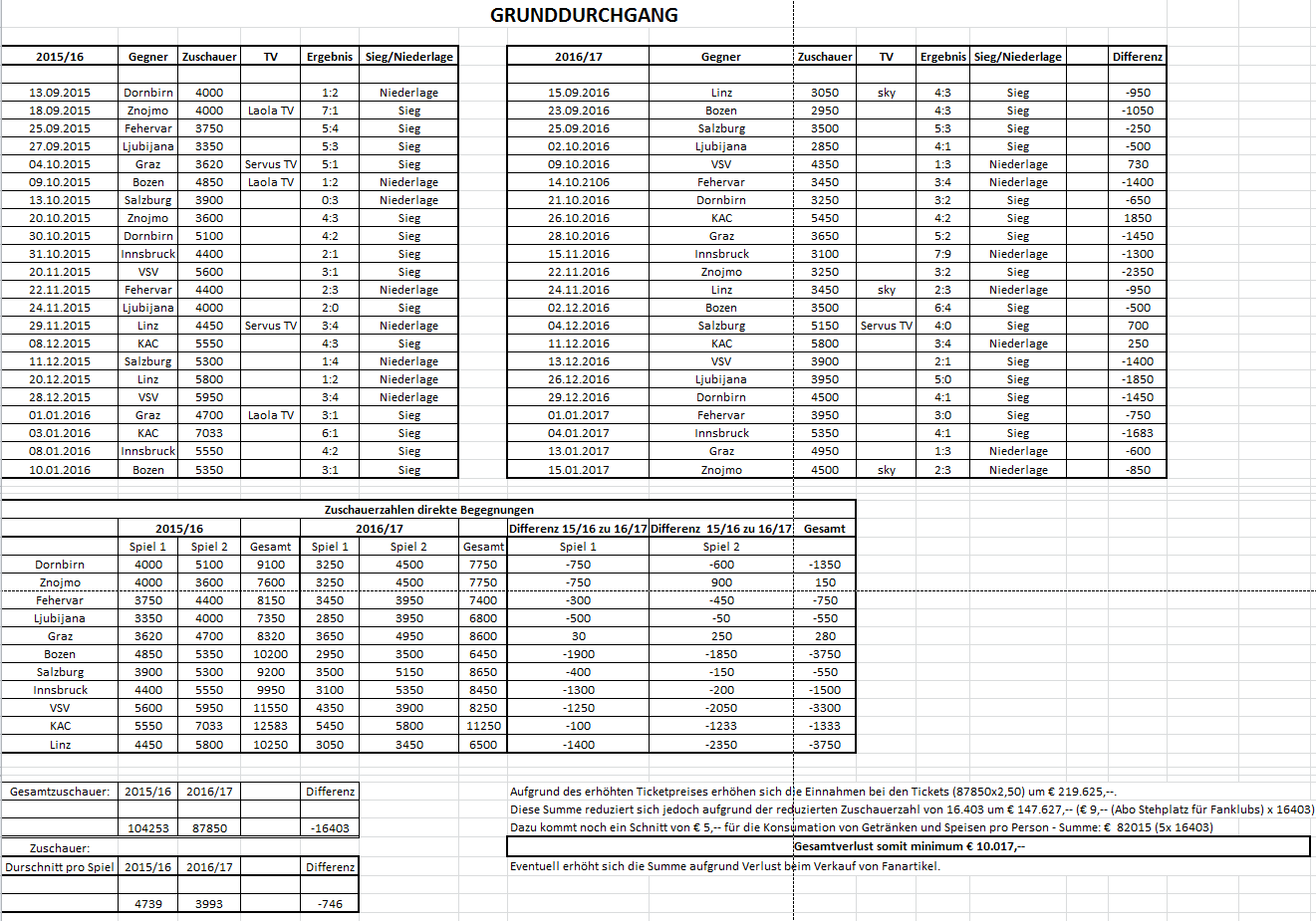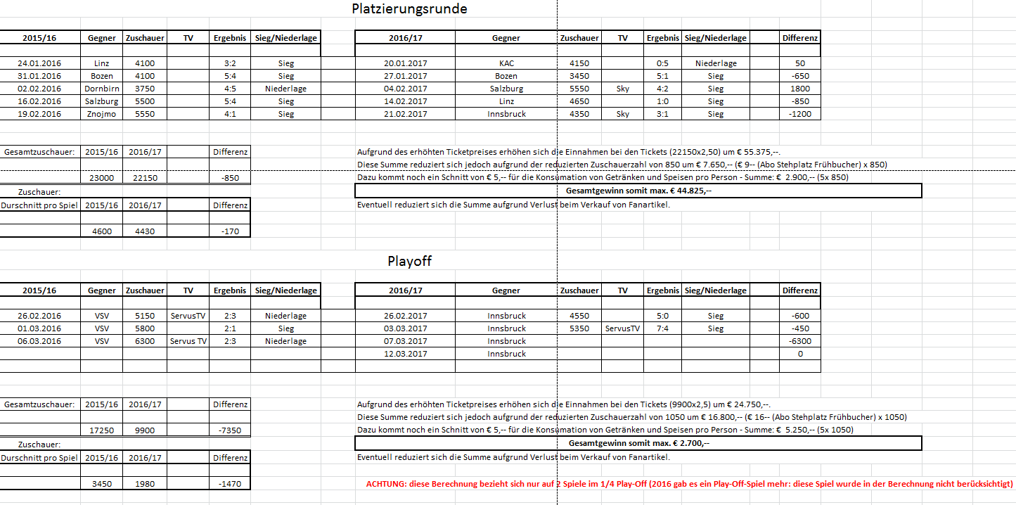 Bei Ljublana hat sich zu den letzjährigen Zahlen nciht viel verändern, da sind schon andere (österreichische) Clubs Schuld, dass die Zahlen rückläufig. sind.