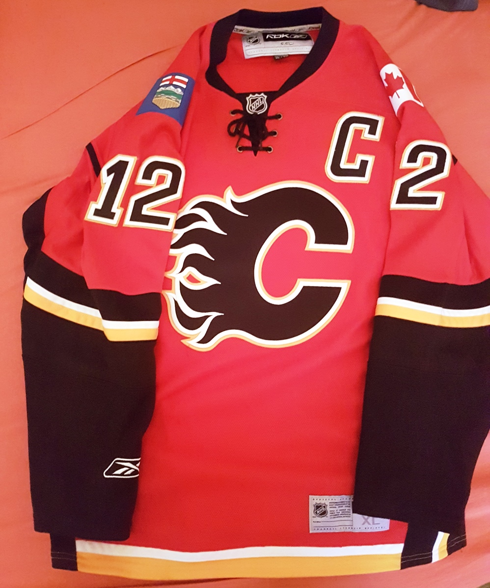 Ich verkaufe ein rotes Calgary Flames jersey (Größe XL) von Jarome Iginla. Im Gegensatz zu den neuen reebok jerseys sind hier die Nummern und Patches noch richtig aufgenäht. Das Trikot wurde nur 4 mal getragen, der Zustand ist daher eigentlich wie neu.