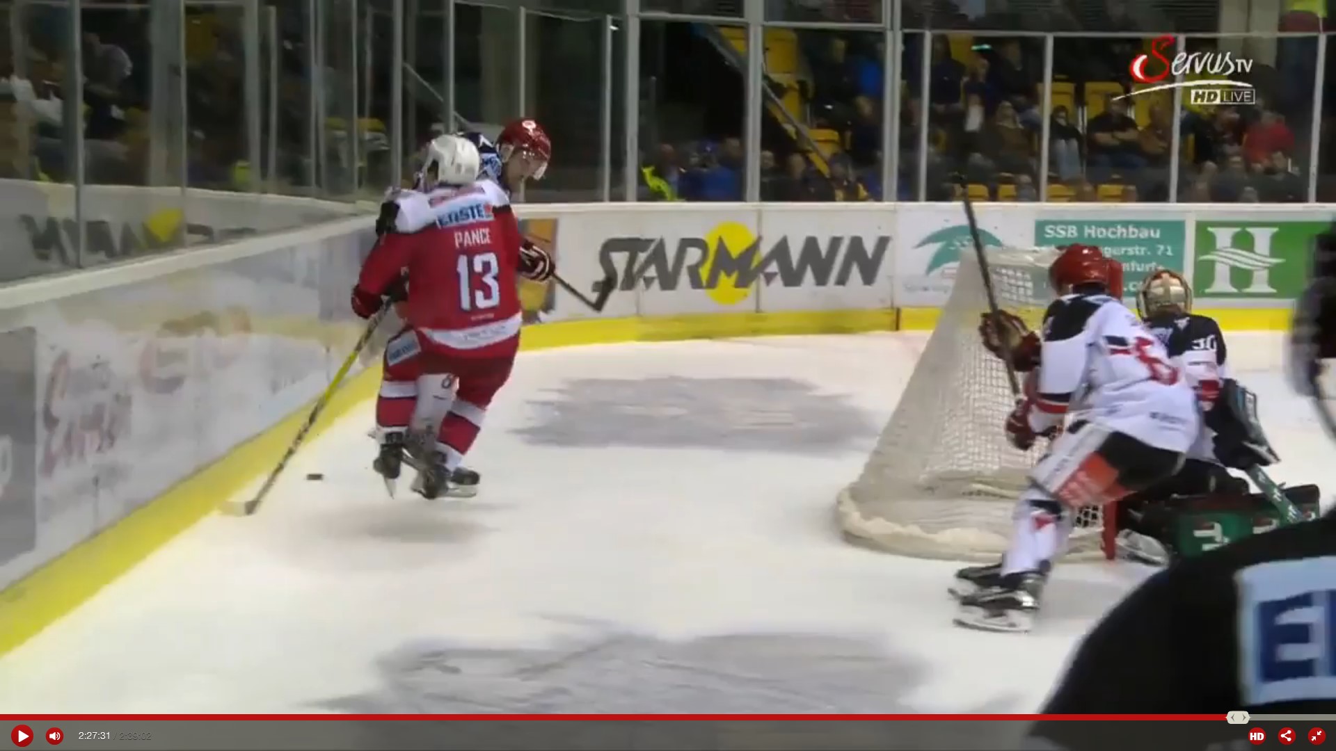 Ich hab zufällig von Schwenningen oder Ried, das weis ich nicht mehr so genau, zum KAC gezappt als sich der Vorfall ereignete. Das muss ich dazusagen, weil ich heute nicht mehr weis ob sich das im KAC Angriffsdrittel zugetragen hat oder hinter dem Klagenfurter Tor.