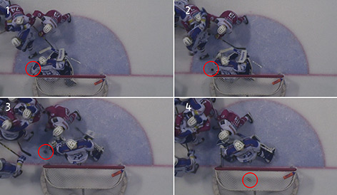 Und auf Bild 4 ist schön zu sehen das er immer noch IM Tor und auf den Knien!! ist als der Puck über die Linie geht!!!