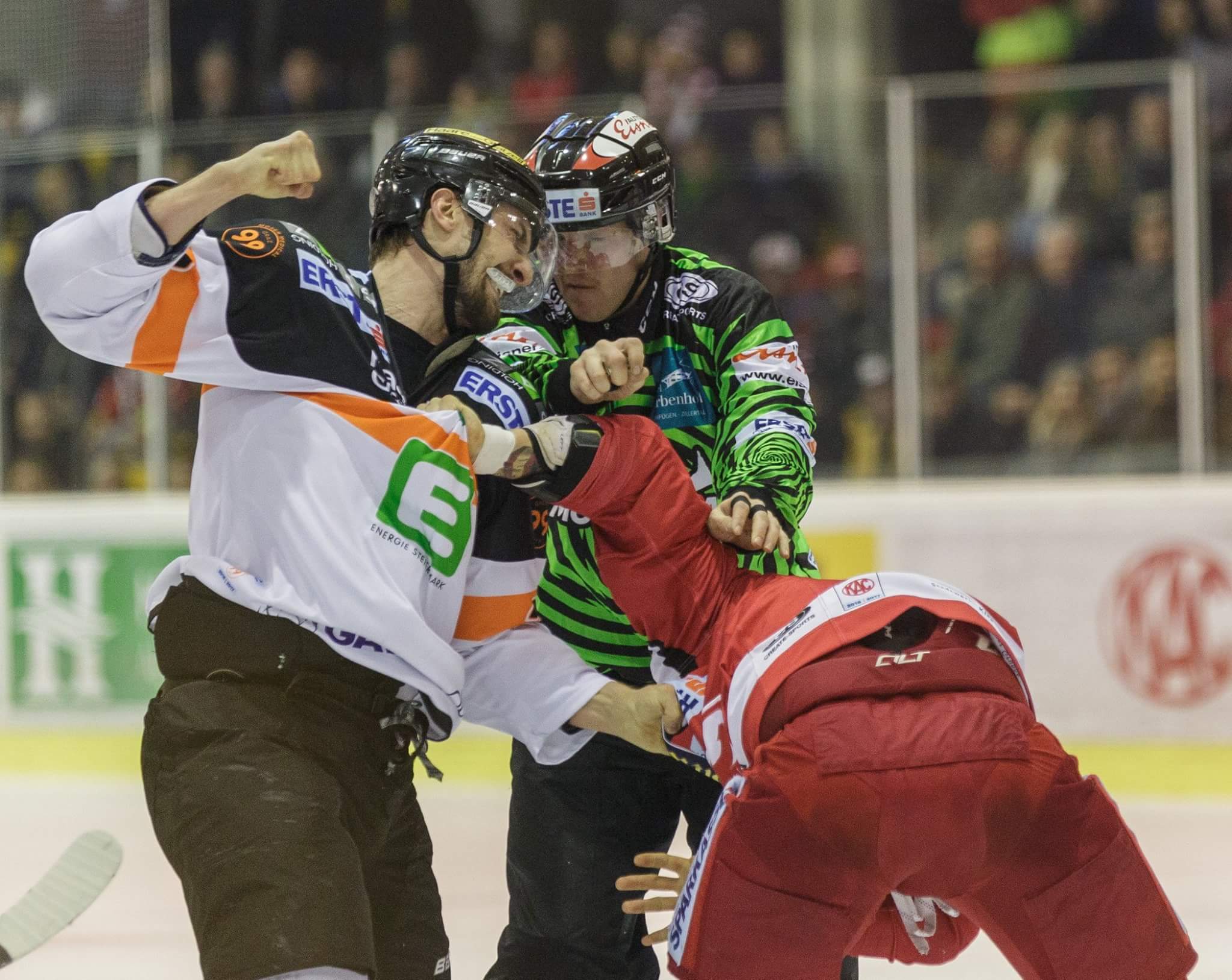 Bei uns nur halbherziges Gestochere - die Grazer mit einigen schönen Aktionen - onetimer, die zu den Toren führten und ein 'such's Balli Tor' von Setze,der wirklich seine Freude hat, wenn es gegen den KAC geht, obwohl er sich wirklich gentlemanlike den Torjubel unterdrückt hat.