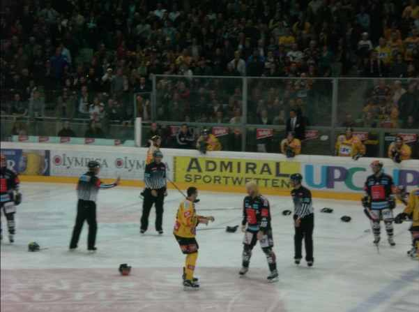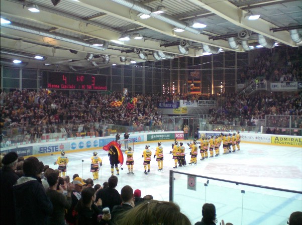 Man merkt, dass die Eishockey Aficionados in Wien halt immer noch dünn gesäht sind. Diese Mannschaft spielt wahrscheinlich das beste Eishockey in Wien seit mehr als 10 Jahren und hätte sich volle bzw. sehr gut gefüllte Hallen verdient. Aber ich muß mich selbst bei der Nase nehmen, suche mir die Matches halt auch sehr selektiv aus dem Spielplan heraus.