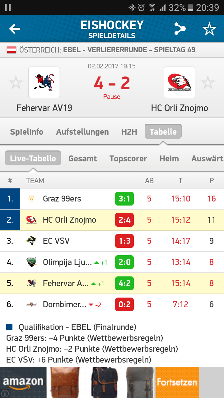 Das direkte Duell könnte noch wichtig werden - immerhin werden wir nach dem heutigen Spieltag nur noch einen Punkt vor Laibach sein ![]()