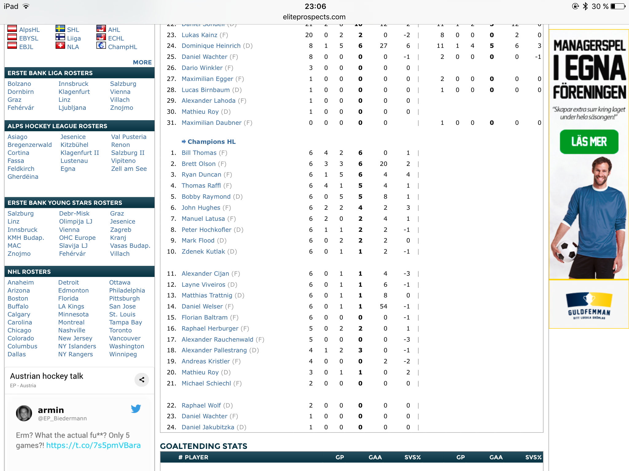 Nimm eliteprospects, da sind zum Beispiel heuer 32 GP bei Jakubitzka vermerkt. Auch die anderen haben wesentlich mehr GP.