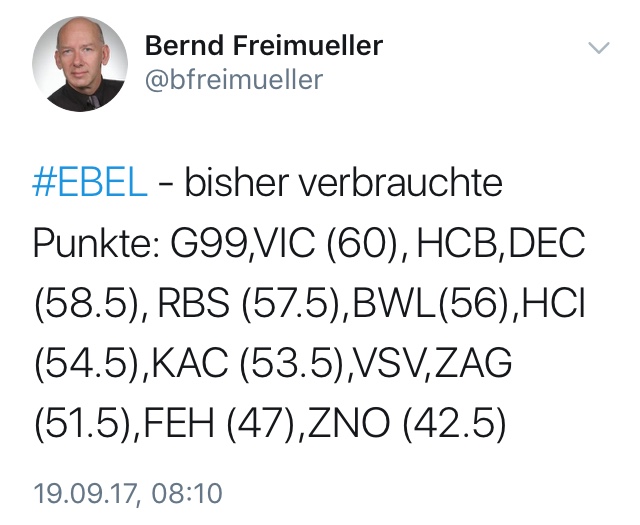 Also wenn's sich's mit den bisherigen Punkten minus Welser nicht ausgeht (wie viel hatten wir?) wird's einen Legio treffen.