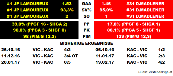 egal ob Duba oder Madlener im Tor steht, wenn die Defensive auslässt, klingelts im Tor des KAC. Man hatte aber bei den Spielen mit Madlener im Tor den Verdacht, dass da die KAC Verteidigung besser aufpasst als bei Duba.