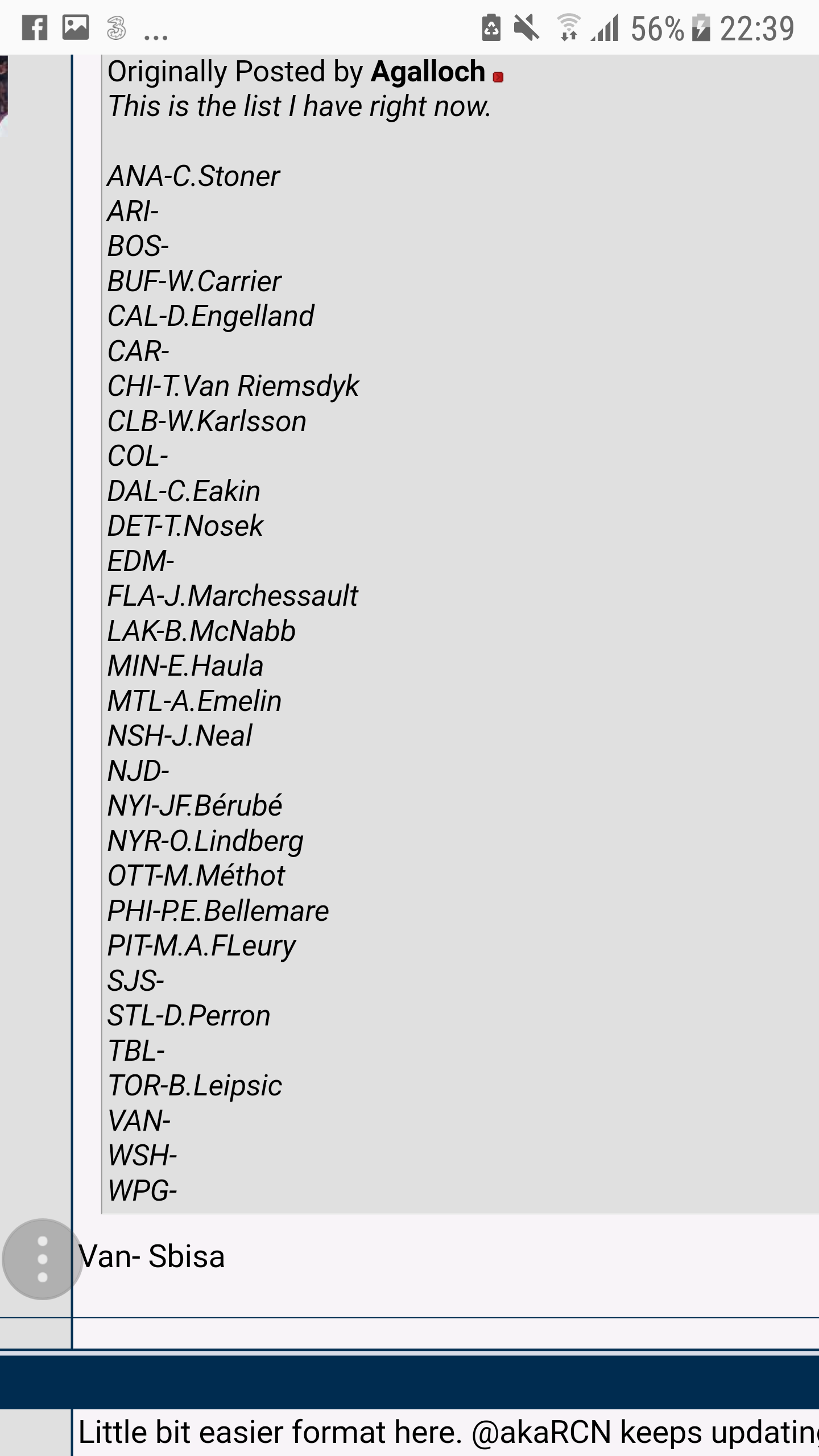 Columbus z.b. könnte Clarkson und den 1st Rounder für lau nach Vegas schicken,in Toronto spekuliert man mit Grabovski und dem 1st Rounder.