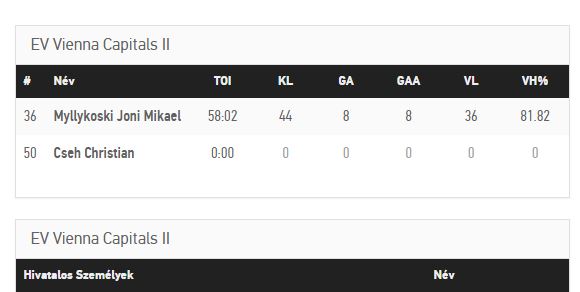 Caps2 dürften aber auf den „längerfristigen“ Ausfall von M. Zimmermann reagiert haben, da als Backup-Goalie ein 34jähriger Finne im lineup aufscheint.