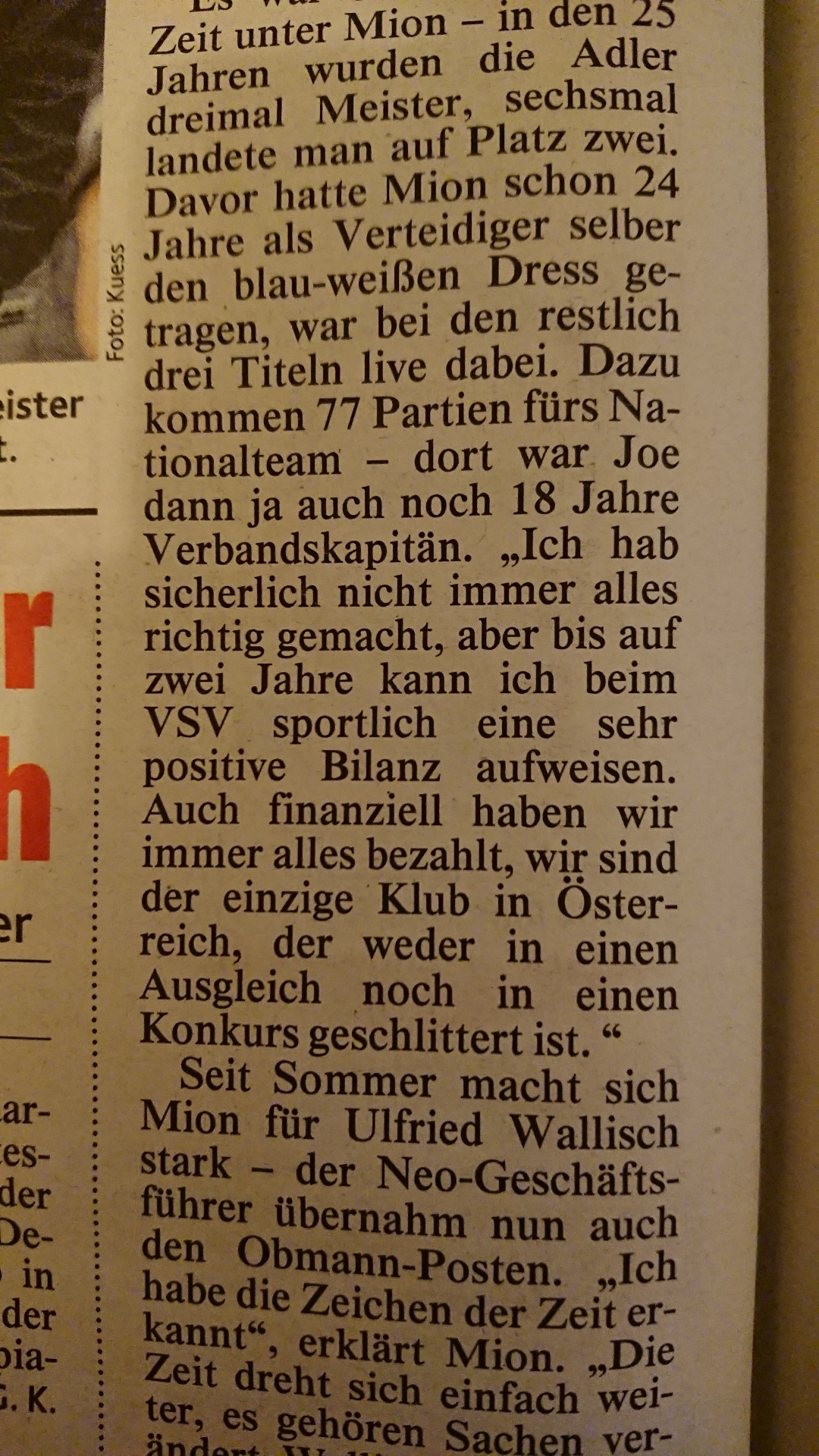 Es passt jetzt nicht direkt zum VSV aber weil es im Zuge des Rücktritts von Mions von Ihm verlautbart wurde: Villach soll der einzige Verein der keinen Konkurs oder einen Ausgleich machen musst sein. Kann mich nicht erinnern dass der 2. Kärntner Verein einen solch einen machen musste.
