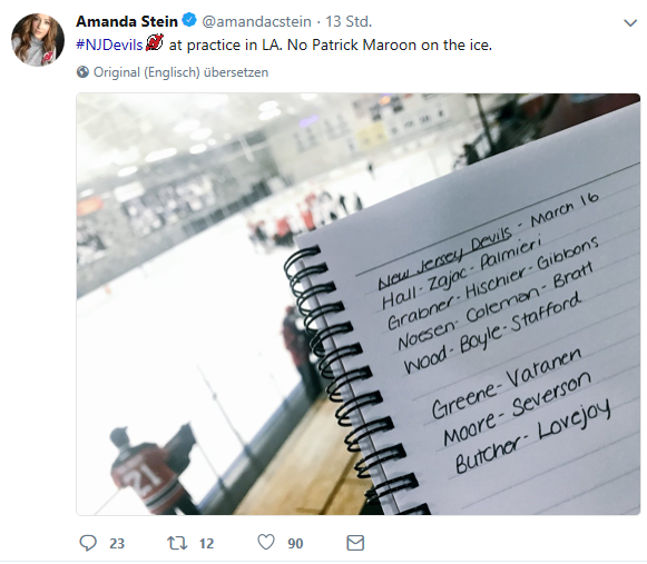 Hynes probiert ja gerne ein wenig herum, das problem bisher war dass Zajac nach seiner verletzung eine zeitlang brauchte um seine form wieder zu finden, somit war Hischier die einzige option für die 1er linie mit Hall, jetzt spielt auch Zajac wieder gut und somit kann man die option mit Hischier in der 2. linie mal probieren.