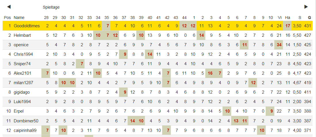 Lange in den top 3, aber im PO abgestürzt! Glückwunsch goodoldtimes