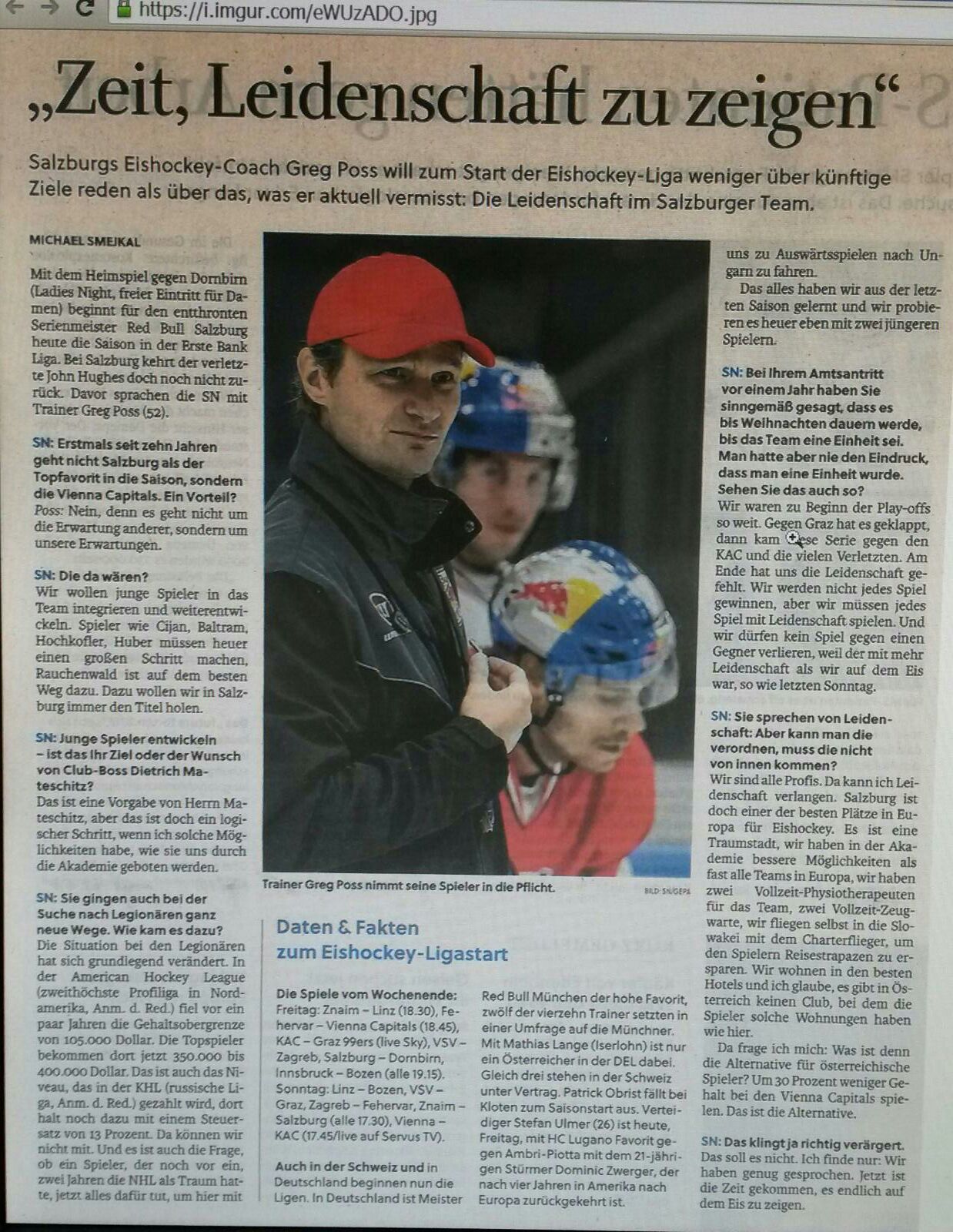 Grund ist eine 16-Seitige Sonderbeilage zur heutigen SN über den EC- Salzburg. Geht da etwas um die Geschichte, die "Seelen und Gesichter" des Teams, Alltag, die Neuverpflichtungen etc.