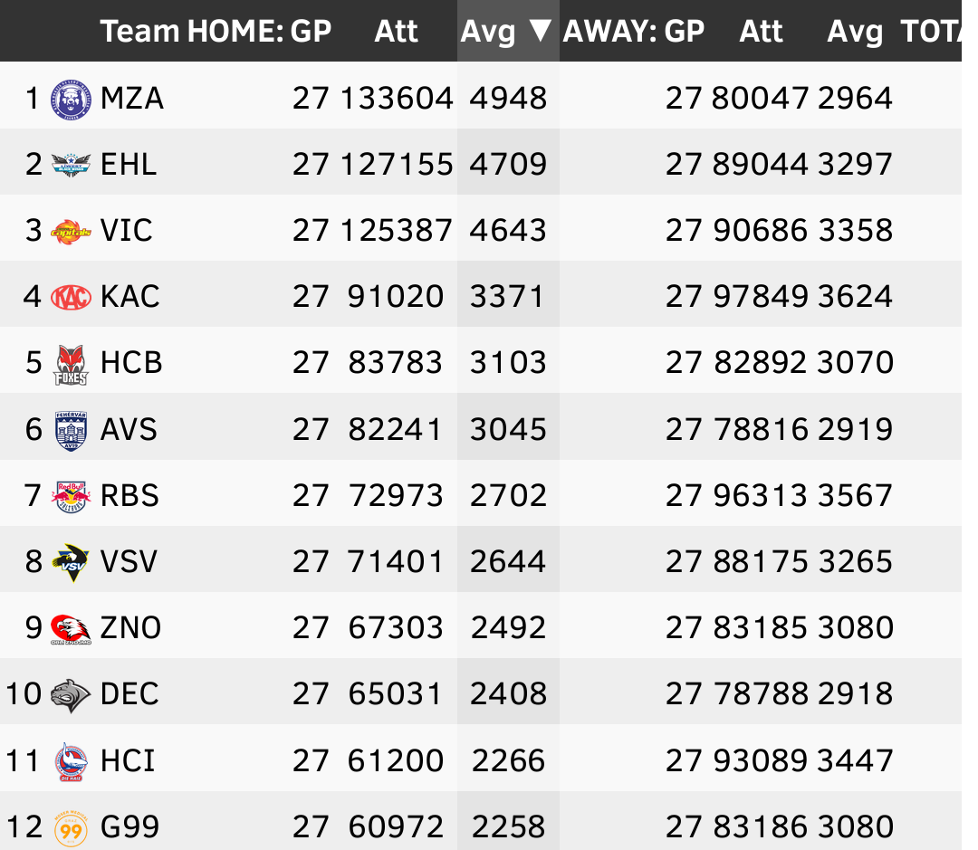 Manche wollen halt anscheinend einfach nicht verstehen, Grundaussage war, dass der KAC innerhalb von Österreich trotz durchwachsener Saisonen in der Vergangenheit immer noch zieht (was diese Zahlen belegen, das Potenzial, wenn es wieder mal richtig gut laufen sollte, ist dementsprechend höher) und ich daher denke, dass es eigentlich auch für einen KAC möglich sein muss, einen privaten Geldgeber zu finden, wenn dies auch bei anderen Vereinen klappt.